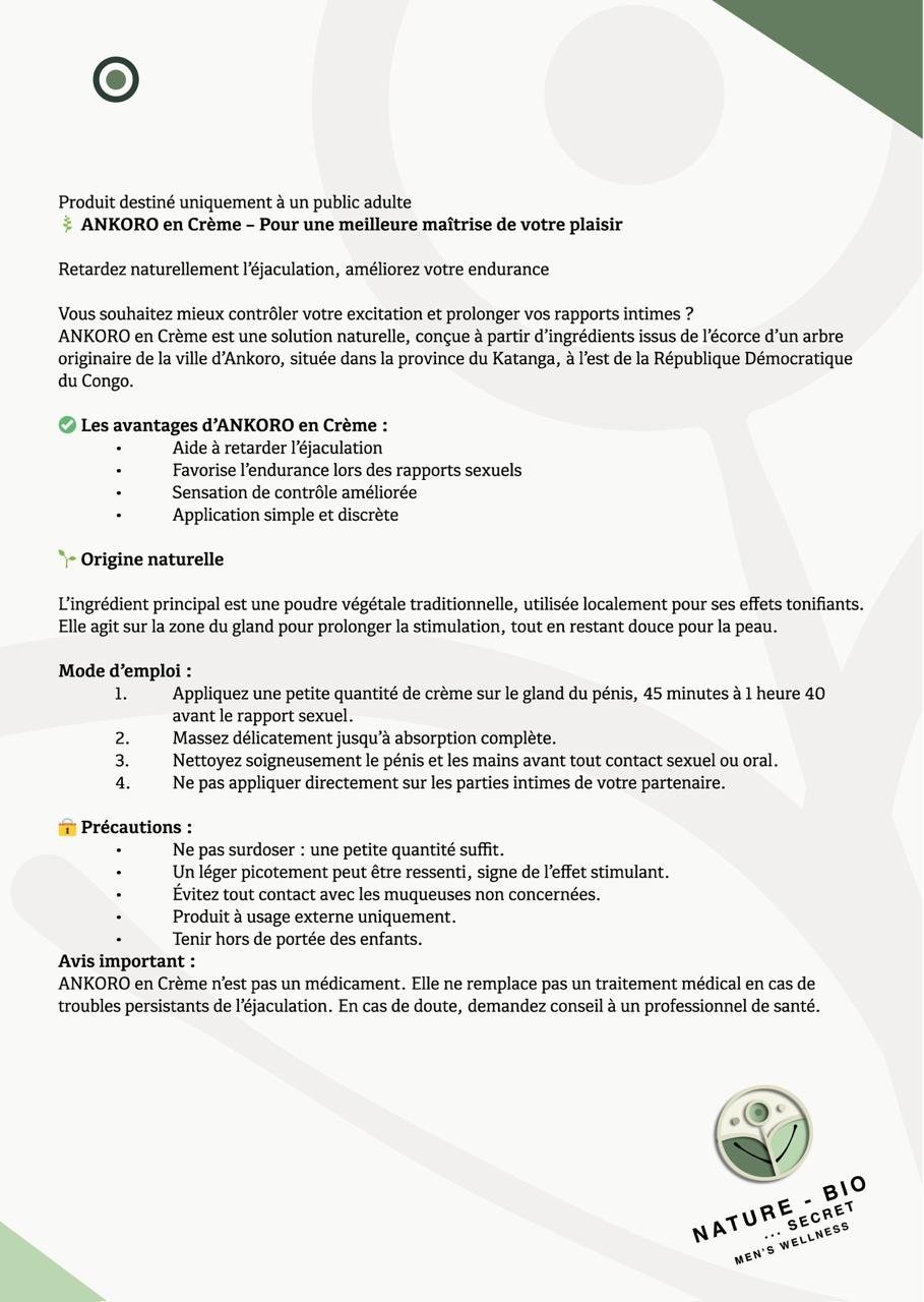 🌿 ANKORO en Crème – Pour une meilleure maîtrise de votre plaisir